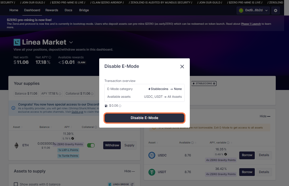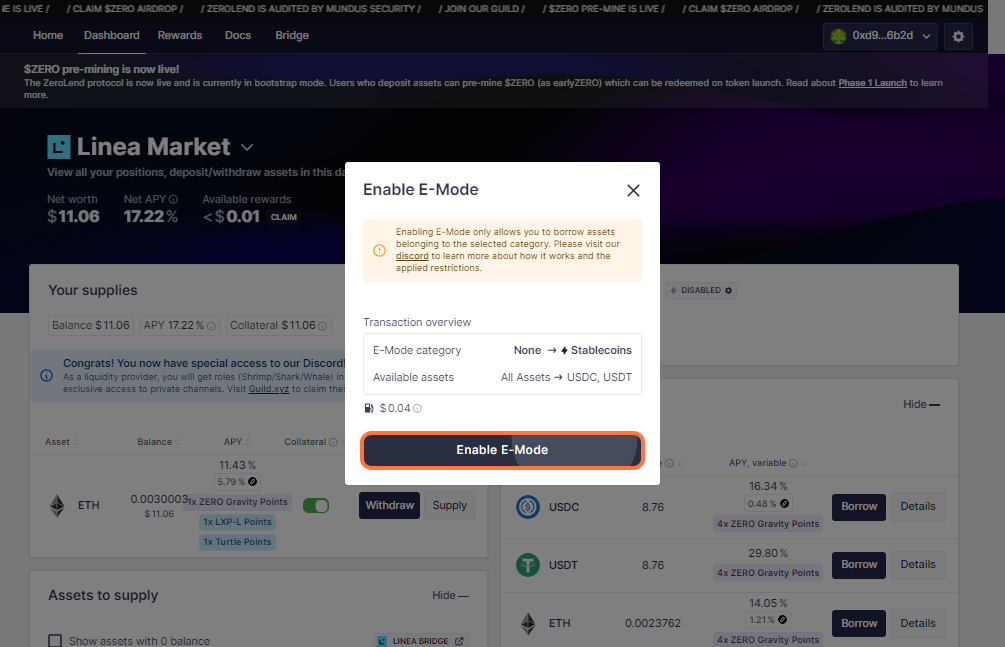 This page discusses how to increase your capital efficiency on ZeroLend with E-Mode.