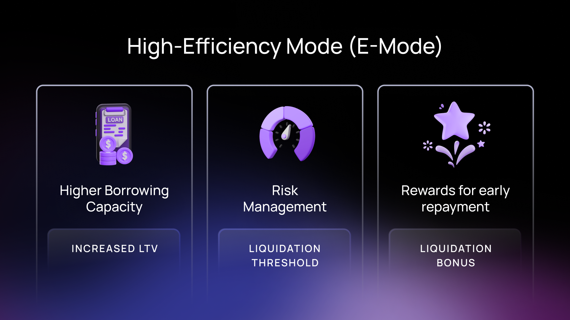 Loan-to-Value (LTV): Higher LTV enables borrowers to access more funds relative to collateral value within the same category. E-mode allows for LTV ratios of up to 97%.